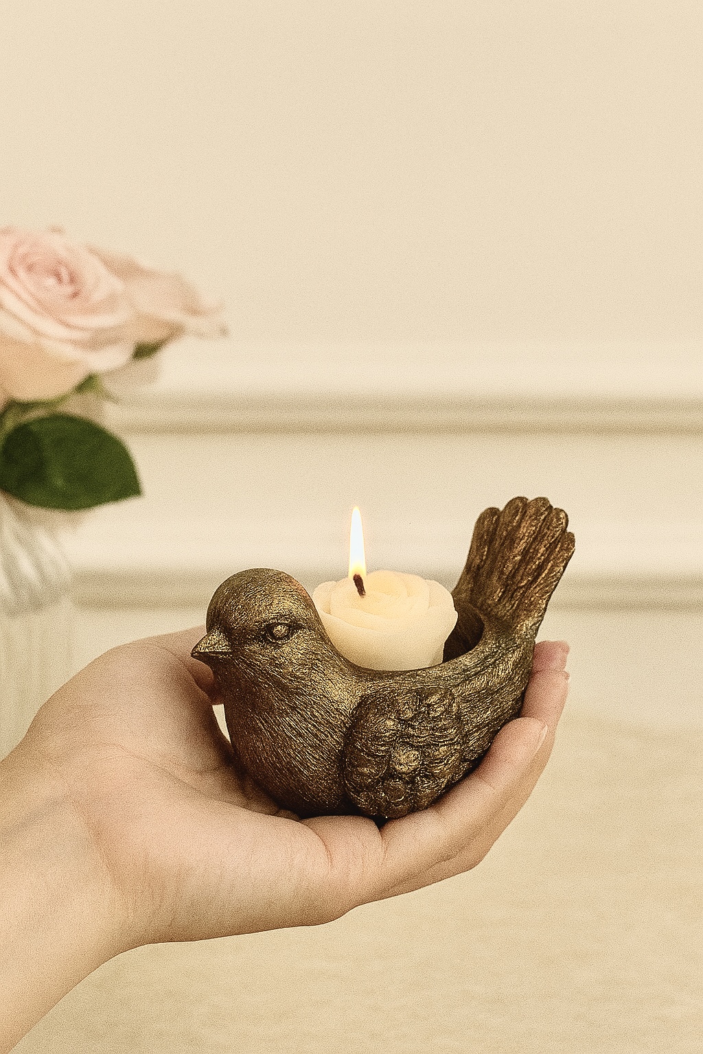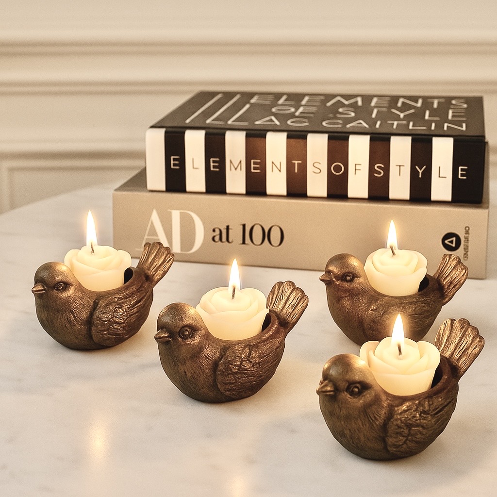 توزيعات عصافير مع شموع صغيرة معطرة على شكل وردة يمكن طلبه للتوزيعات المواليد او المناسبات السنوية البكيج صغير وانيق